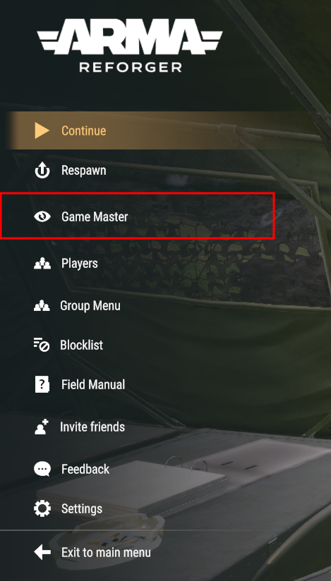 - Enter the pause menu, and you should now see a "Game Master" option, which you can use to manage the server.