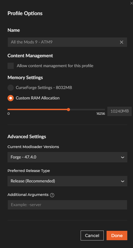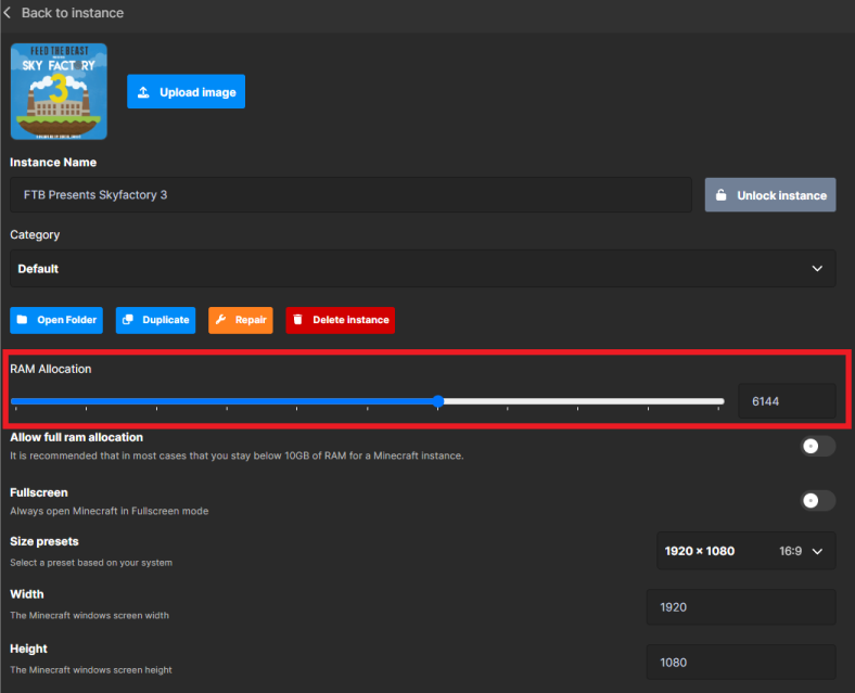 - Hit Save. You can now start and play Minecraft with more RAM allocated.