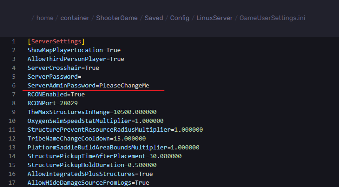 - Locate the `ServerAdminPassword` line, as shown in the example below.