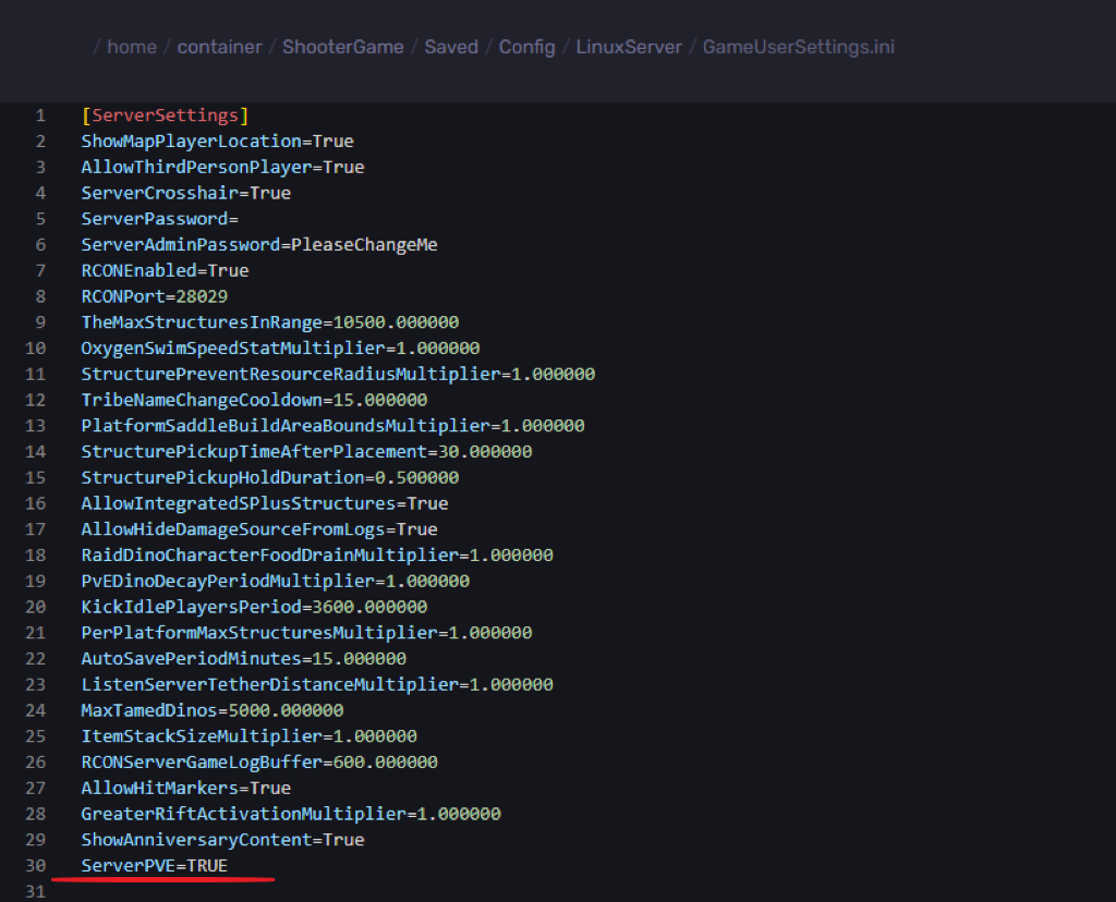 /ShooterGame/Saved/Config/LinuxServer/GameUserSettings.ini