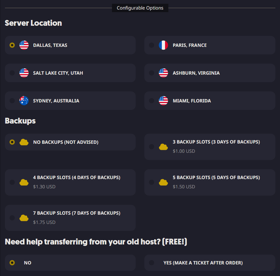 You can also choose the Server Location that best suits your needs. Sparked Host offers multiple global locations, allowing you to host your VPS Hosting service closer to you or your player base. Selecting a location near your region helps reduce latency and ensures a smoother, more responsive gameplay experience for you and other players.
